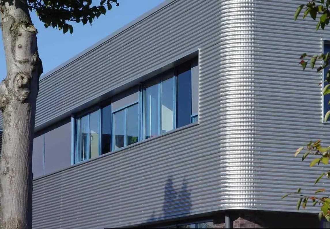 Необычный волнообразный профиль – в отличие от остальных марок профнастила, он не имеет трапециевидных волн. Данная модификация и толщина стальной основы от 0,45 до 0,7 мм делают МП-18 подходящим вариантом для установки заборов и отделки внешних стен нежилых строений ( автосервисы, склады, цеха ). МП-18 успешно совмещает в себе прочностные характеристики с эстетичным обликом. В роли основы для изготовления МП-18 используется тонколистовая сталь промышленной оцинковки. Она отлично переносит даже тяжёлые климатические условия: агрессивный ультрафиолет, ветер, тяжёлый снег. А декоративно-протекторное полимерное покрытие дополнительно предупреждает коррозию и прочие окислительные процессы. При монтировании МП-18 используются особые угловые детали закруглённой конфигурации, которые завершают облик всего объекта и придают ему современный вид.